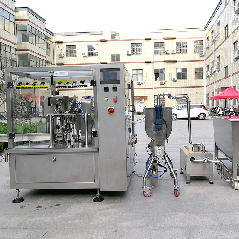 在火鍋底料生產行業當中,牛油火鍋(guō)底料包(bāo)裝機因高效、智(zhì)能、精準、自動化、無菌室的(de)特點,成為(wéi)了袋裝醬料的主流選擇。袋裝醬料包裝機是星(xīng)火智能設備轉為醬料包裝工(gōng)作所設計的一款機器,它的適用範圍非常廣,除了牛油火鍋(guō)底(dǐ)料之後,還能夠對豆瓣醬、花生醬(jiàng)、芝麻醬、辣椒醬、番茄醬(jiàng)等各種高粘度的袋裝(zhuāng)醬料,提供穩定的包裝條件。
