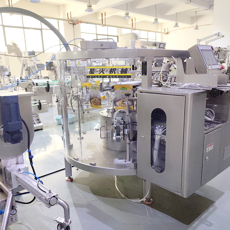 5.可兼容50-1000g的包裝容量,八工位,包裝速度可達40-70包/分鍾,效率高。