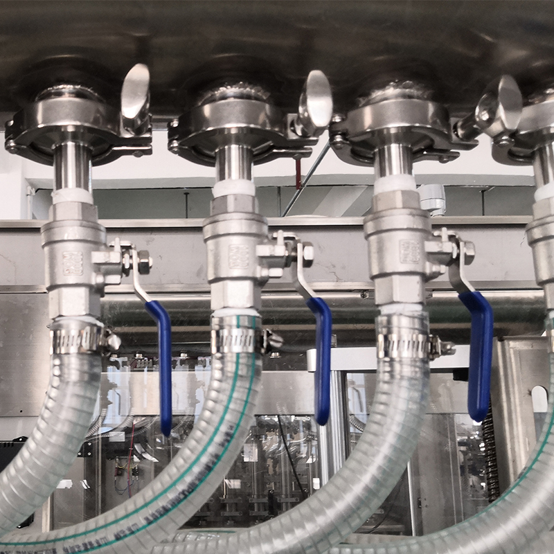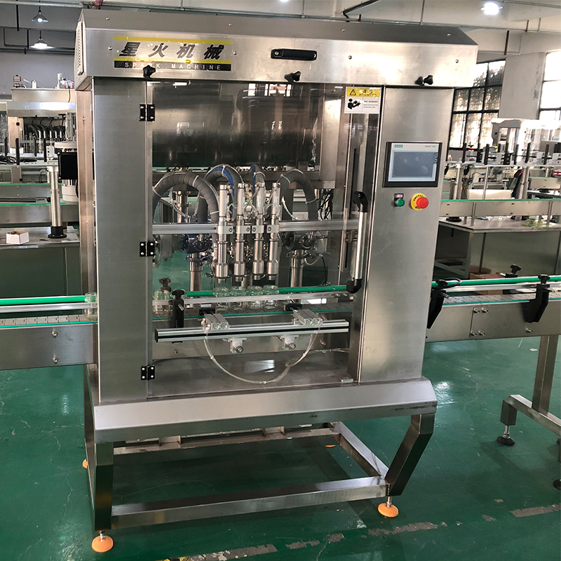 3、容器定(dìng)位:自(zì)動定位係統可以確保容器精準的停(tíng)止在灌裝頭下方,保證灌裝的精準充填。