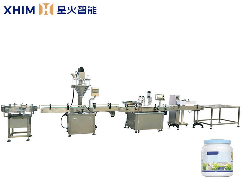 自動化單頭粉劑灌裝生產(chǎn)線-直線式(shì)高鈣粉灌裝機