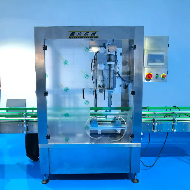 2、控製技術:采用(yòng)PLC操控扭矩控製技術,可(kě)根(gēn)據瓶蓋的(de)材(cái)質、尺寸以及(jí)密封要求,精準調節旋蓋扭矩。在旋蓋過程中,旋(xuán)蓋頭緊(jǐn)緊(jǐn)抓住(zhù)瓶蓋,按照預設的扭矩和旋轉圈數進行旋蓋操作。