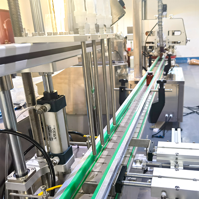 全(quán)自動四頭(tóu)齒輪泵灌裝機在灌(guàn)裝精(jīng)度、自動化控製、穩定灌裝方麵有著穩(wěn)定的生(shēng)產(chǎn)表現。小型液體灌裝機械主要適用於各種流動性強的:口腔噴霧劑、懸浮液、眼鏡清洗劑、碘(diǎn)伏、稀釋劑等(děng)小瓶裝的液體物料的自動化生產(chǎn)。全自動四頭齒輪泵灌裝機運(yùn)用高精度的齒輪泵作為灌裝執行部件,其工作原理高效、智能、精準的控製每一瓶液體的流動方向,掌握生產狀態,被廣泛用於:飲料、醫藥、化妝品等行業(yè)使用。